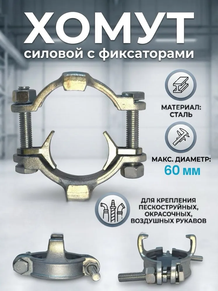 Для рукавов наружным сечением 48 - 60 мХомут выполнен из стали. Имеет фиксирующие зубья. Данная модель подойдет для фиксации рукавов 48-60 мм.