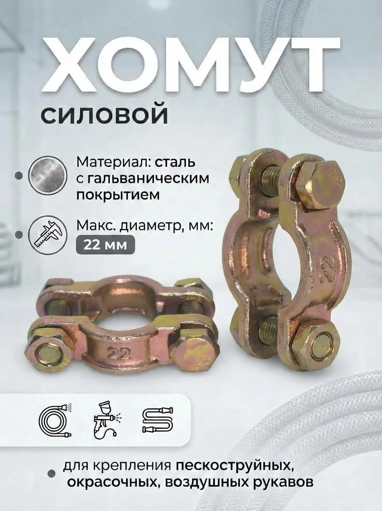 Хомут силовой двухболтовый для рукавов, шлангов до 22 мм