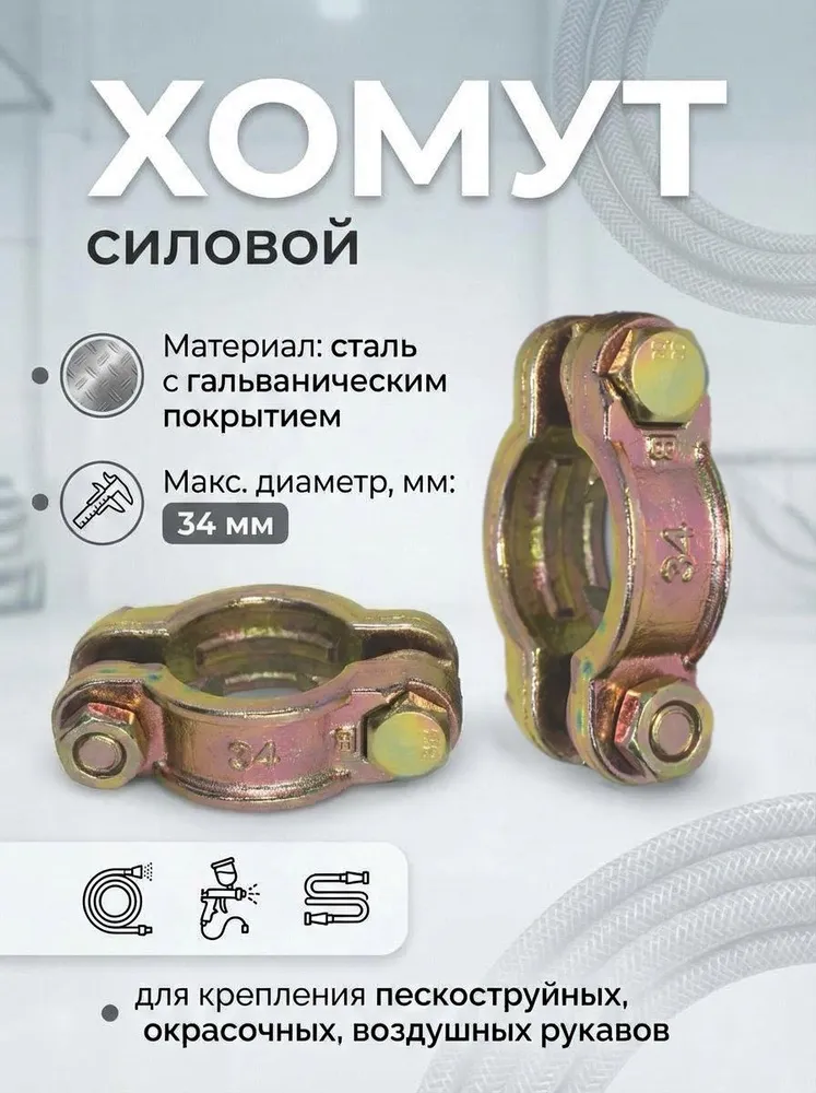 Для соединения рукавов между собой и в месте крепления соплодержателя используют силовые хомуты 3/4", которые используются в пескоструйных аппаратах со шлангами диаметром 28-34 мм.