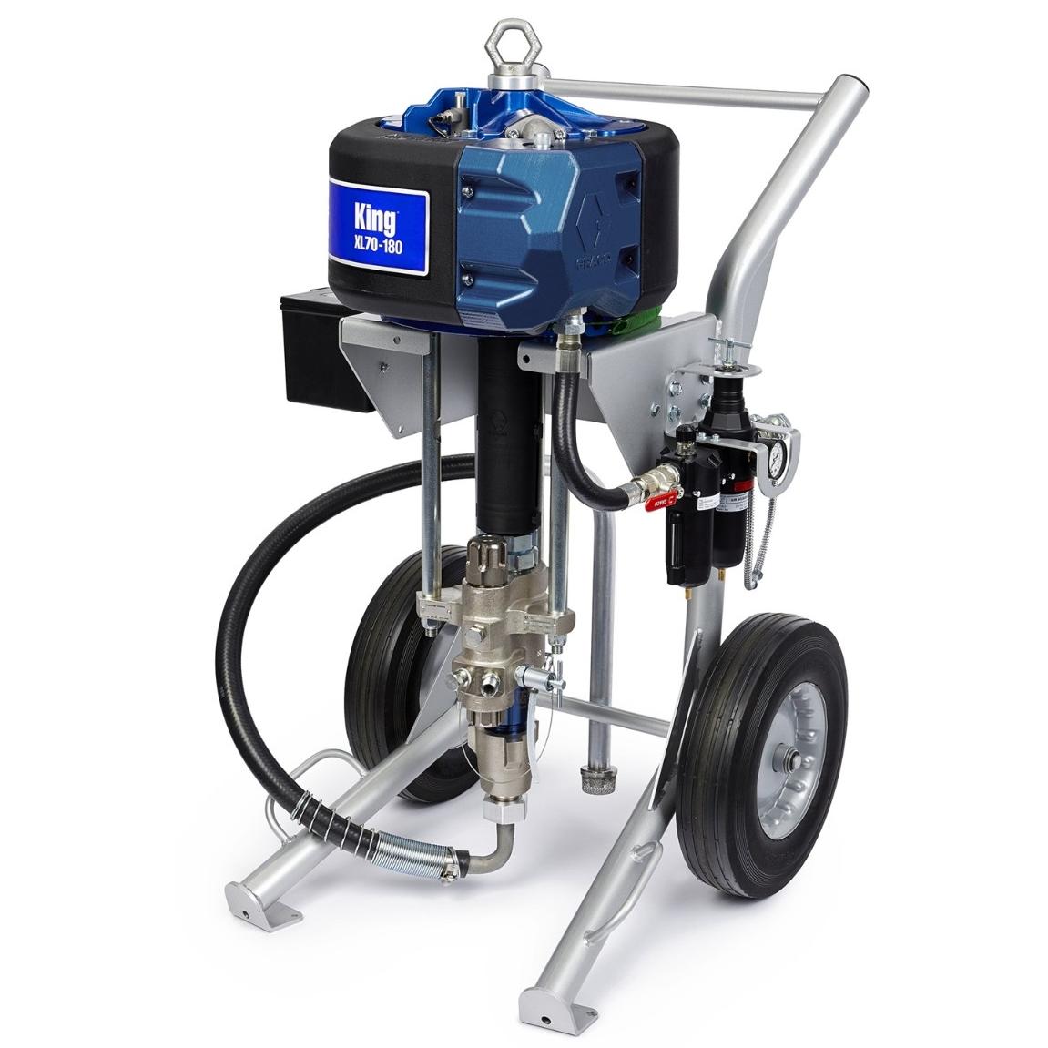 Распылитель Graco King 70:1, встроенный фильтр, усиленная тележка, пневматическое управление, комплект сифона, XTR-7, шланг 15 м (50 футов), гибкий шланг-поводок 1,8 м (6 футов)