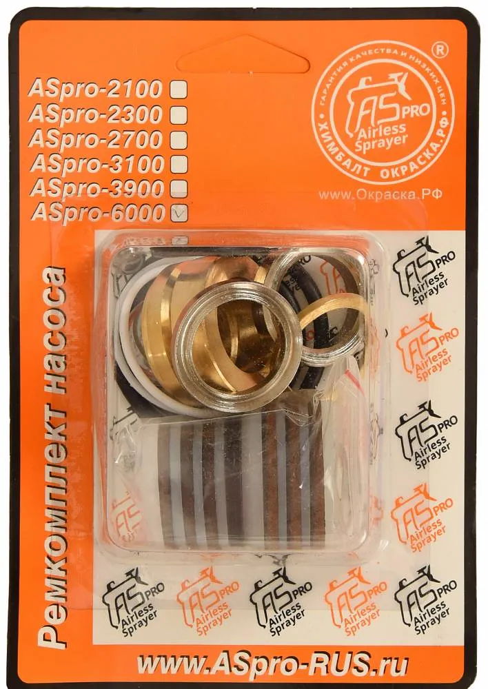 Ремкомплект поршневого насоса высокого давления окрасочного аппарата AS-6000 включает в себя: