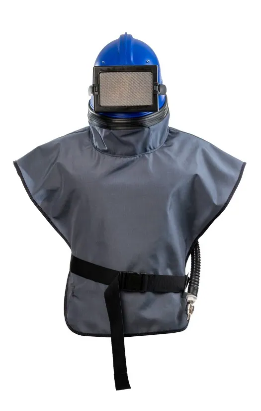 Шлем для защиты пескоструйщика с нагрудником (пелериной) и выходом для подключения воздуха
