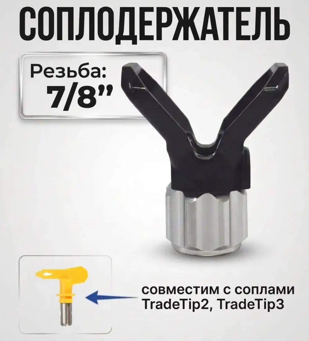 Предназначен для замены изношенного соплодержателя на безвоздушных пистолетах Wagner, Graco, Wiwa, Tecnover, Titan, TriTech с резьбой g-thread 7/8" (американский стандарт)