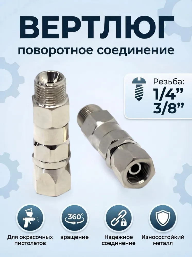 Вертлюг для окрасочного пистолета 1/4" 3/8" Handok (длин) предназначен для безвоздушного высоконапорного распыления краски. Подключение формируется между пистолетом и шлангом. Вертлюг поддерживает герметизацию высоконапорных линий и обеспечивает вращательное движение на 360 градусов между шлангом и пистолетом, предотвращающее перегиб шланга при распылении. Изготовлен из нержавеющей стали, не подвержен коррозии, прочный и долговечный в использовании.Шарнирное соединение штуцер 1/4" дюйма с разъемом гайки 3/8" дюйма.